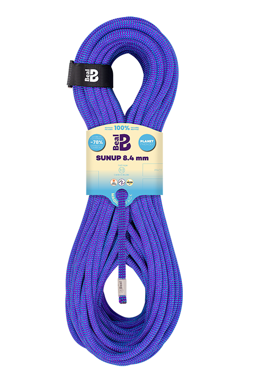 La SUNUP 8.4mm est la corde dynamique à double la plus Planet Friendly jamais fabriquée ! 100% recyclée à partir de pneus usés.